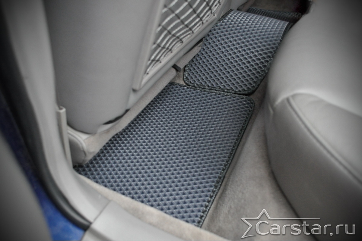 Толщина ковриков EVA составляет 10-12 мм. Глубина ячеек 7-8 мм. Такая толщина ковриков позволяет им служить довольно долго, не протираясь до 3 лет. А благодаря такой глубине ячеек коврик EVA площадью 1 кв.м. способен захватить около 3,5 л жидкости, сохраняя в чистоте вашу обувь и обивку салона.