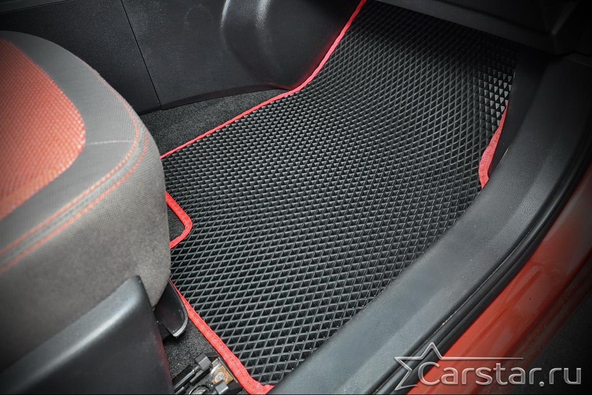 Автоковрики EVA производятся из инновационного экологически чистого материала, обладающего высочайшей износостойкостью, устойчивостью к экстремальным температурам (от +40 С до -40 С) и агрессивным химреагентам. Они в 4 раза легче обычных резиновых аналогов, а чрезвычайно плотная структура обеспечивает им безупречную гидро- и шумоизоляцию!