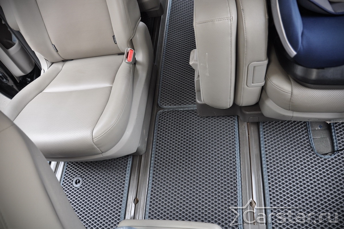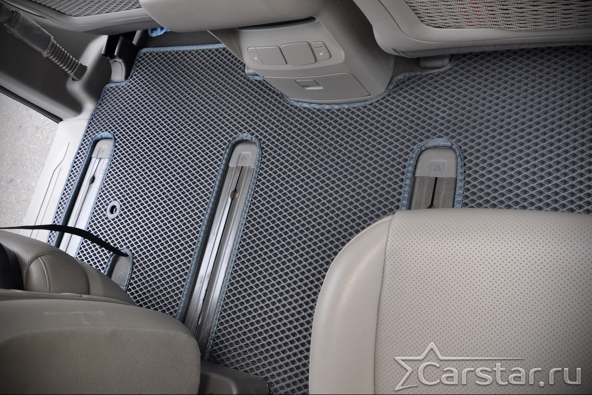Текстильные автомобильные коврики Kia Carnival III (11мест) 2+2 с трансформерами (2014->) – это классический аксессуар, который обеспечит салону автомобиля неизменную чистоту, порядок и уют. Компания Carstar предлагает изделия из качественного ковролина в сочетании с полипропиленовым основанием на шипах, такая комбинация делает их прочными и водонепроницаемыми.