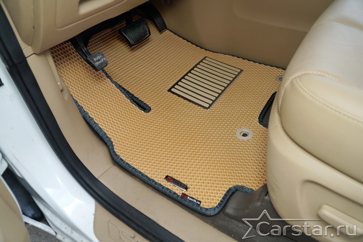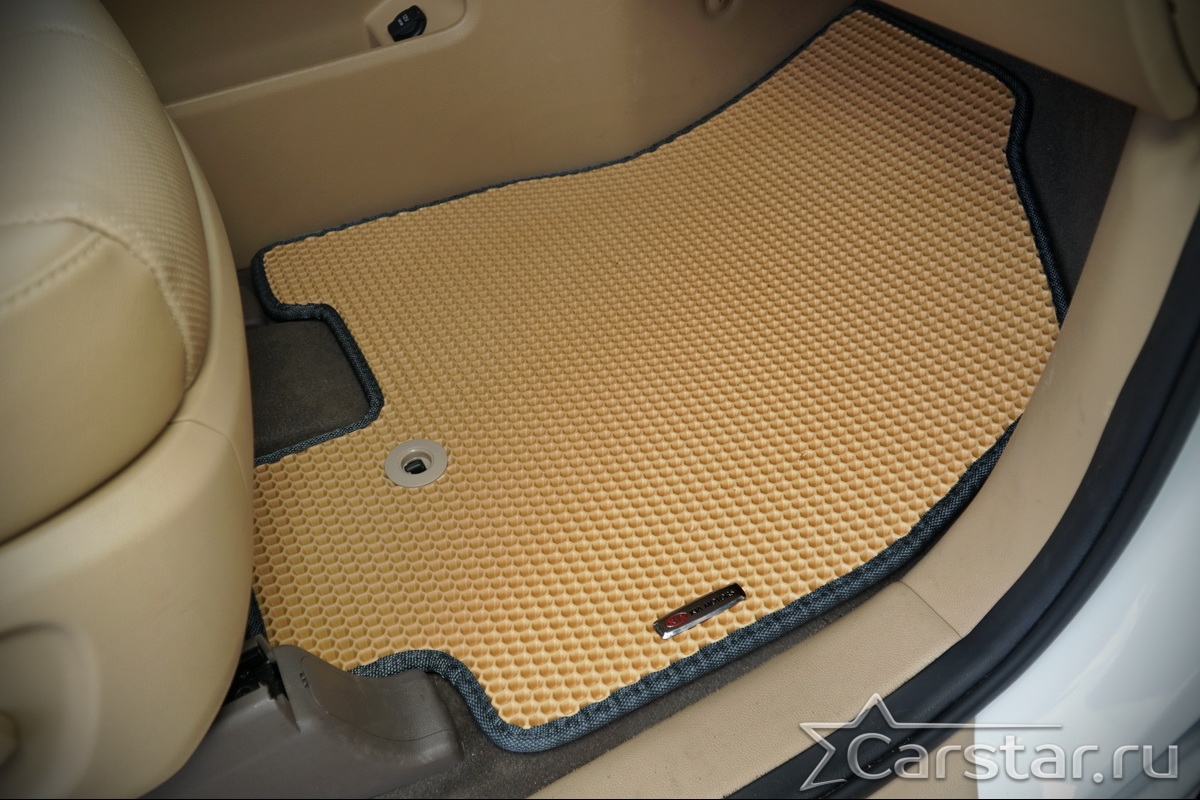 Текстильные коврики надёжно крепятся с помощью оригинальных систем фиксации. Обратная сторона имеет противоскользящее покрытие, что обеспечивает защиту от смещений и безопасность. Максимальное удобство достигается точными лекалами.