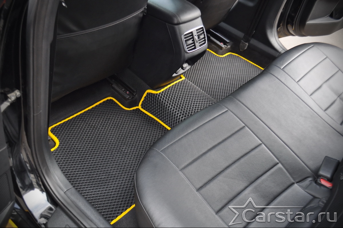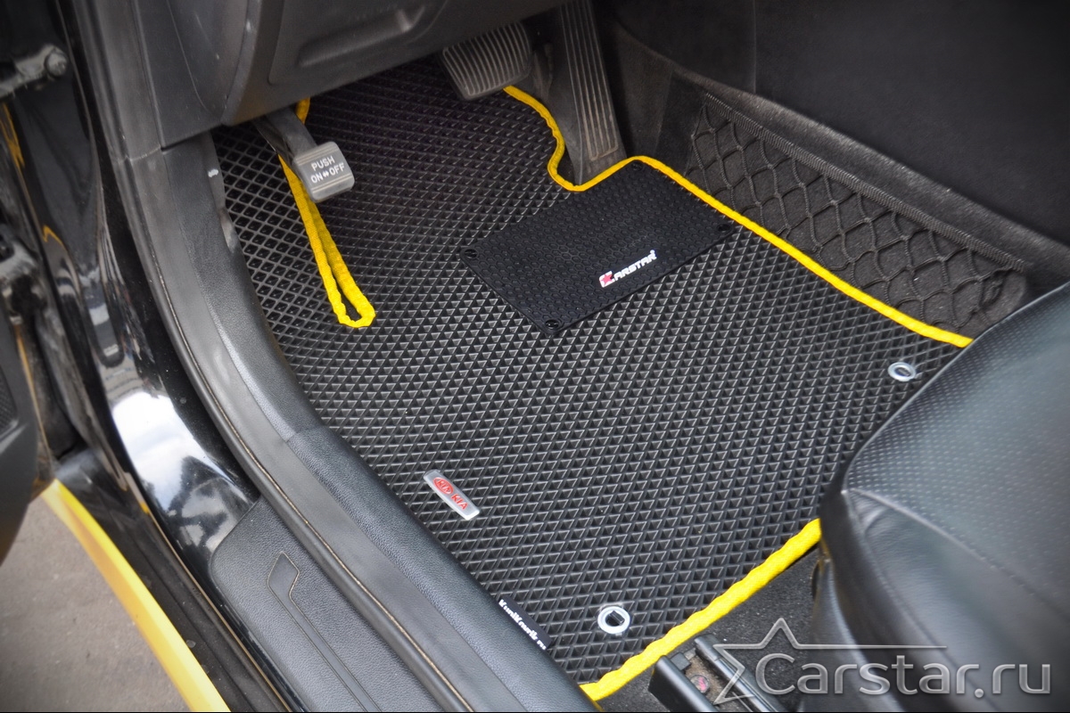 Текстильные коврики надёжно крепятся с помощью оригинальных систем фиксации. Обратная сторона имеет противоскользящее покрытие, что обеспечивает защиту от смещений и безопасность. Максимальное удобство достигается точными лекалами.