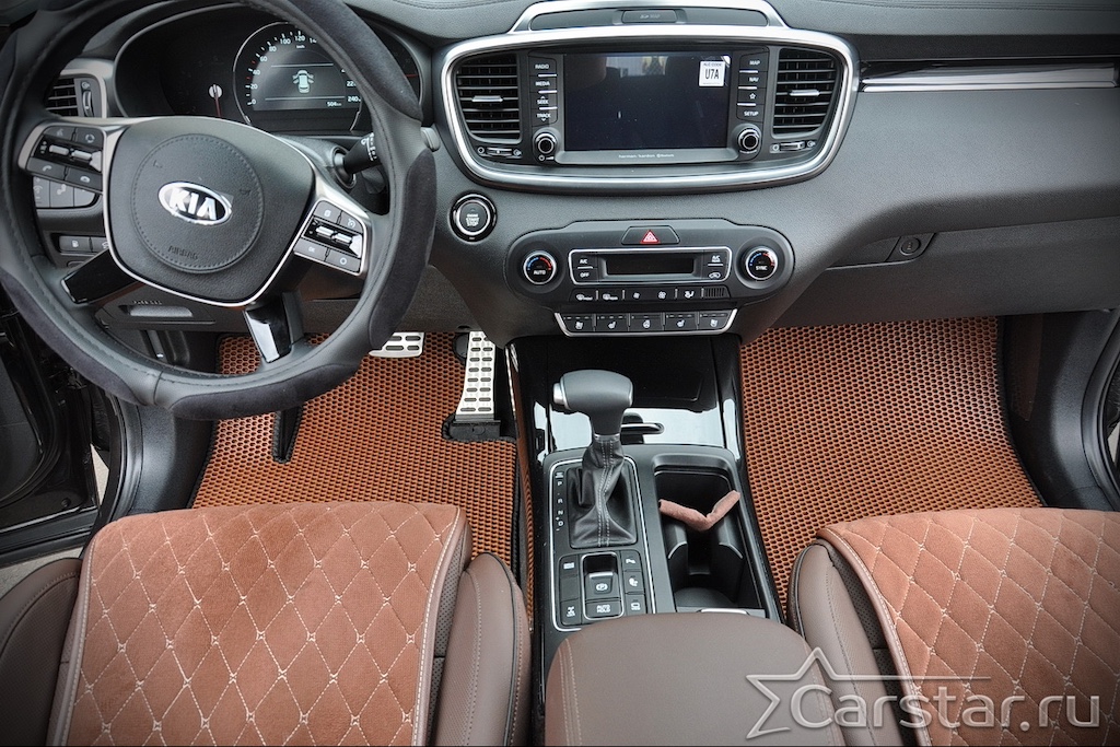 Текстильные автомобильные коврики Kia Sorento III Prime 3 ряда (2014-2020) – это классический аксессуар, который обеспечит салону автомобиля неизменную чистоту, порядок и уют. Компания Carstar предлагает изделия из качественного ковролина в сочетании с полипропиленовым основанием на шипах, такая комбинация делает их прочными и водонепроницаемыми.