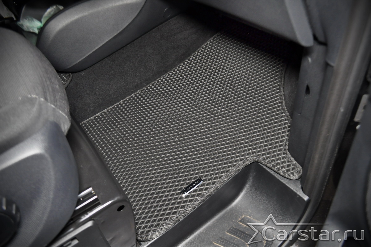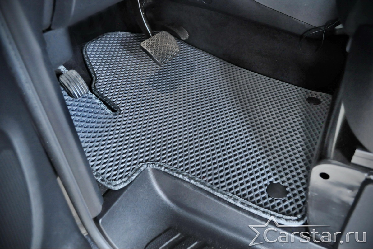 Текстильные коврики надёжно крепятся с помощью оригинальных систем фиксации. Обратная сторона имеет противоскользящее покрытие, что обеспечивает защиту от смещений и безопасность. Максимальное удобство достигается точными лекалами.