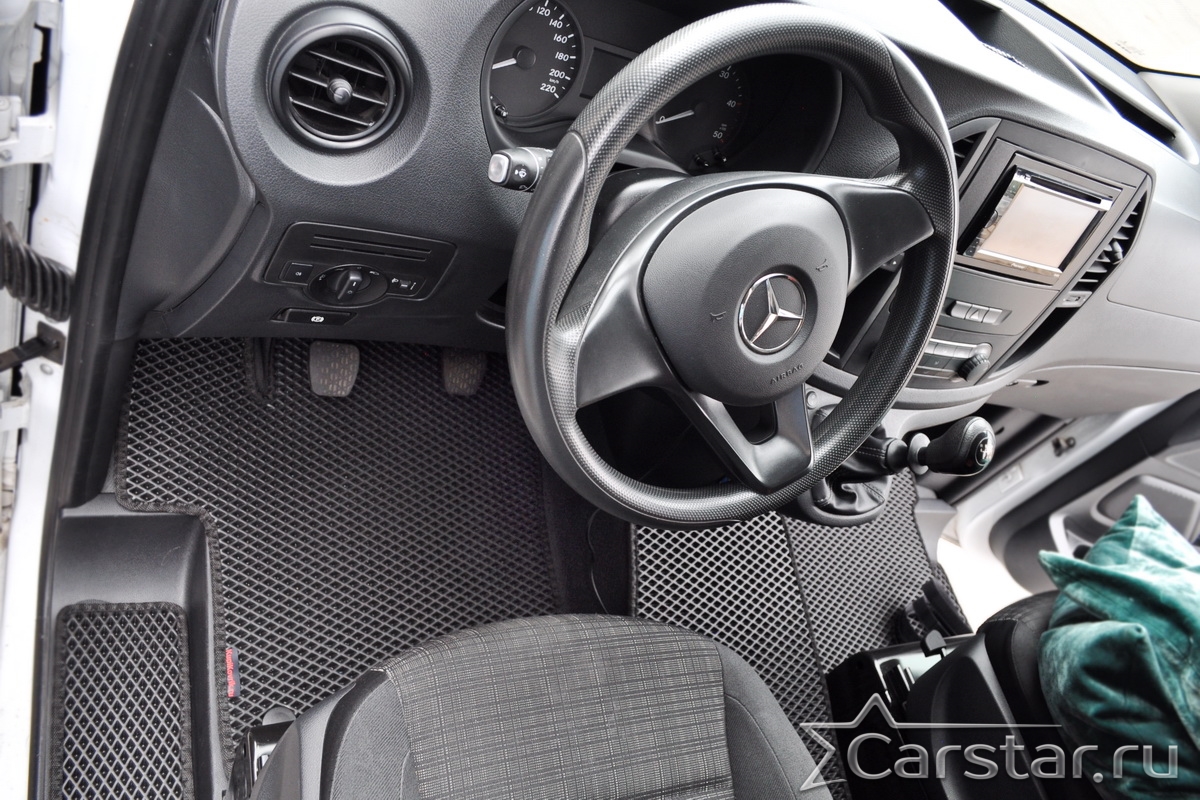 Текстильные автомобильные коврики Mercedez-Benz V-klasse II W447 (2 ряд - 2 места с проходом) (2014->) – это классический аксессуар, который обеспечит салону автомобиля неизменную чистоту, порядок и уют. Компания Carstar предлагает изделия из качественного ковролина в сочетании с полипропиленовым основанием на шипах, такая комбинация делает их прочными и водонепроницаемыми.