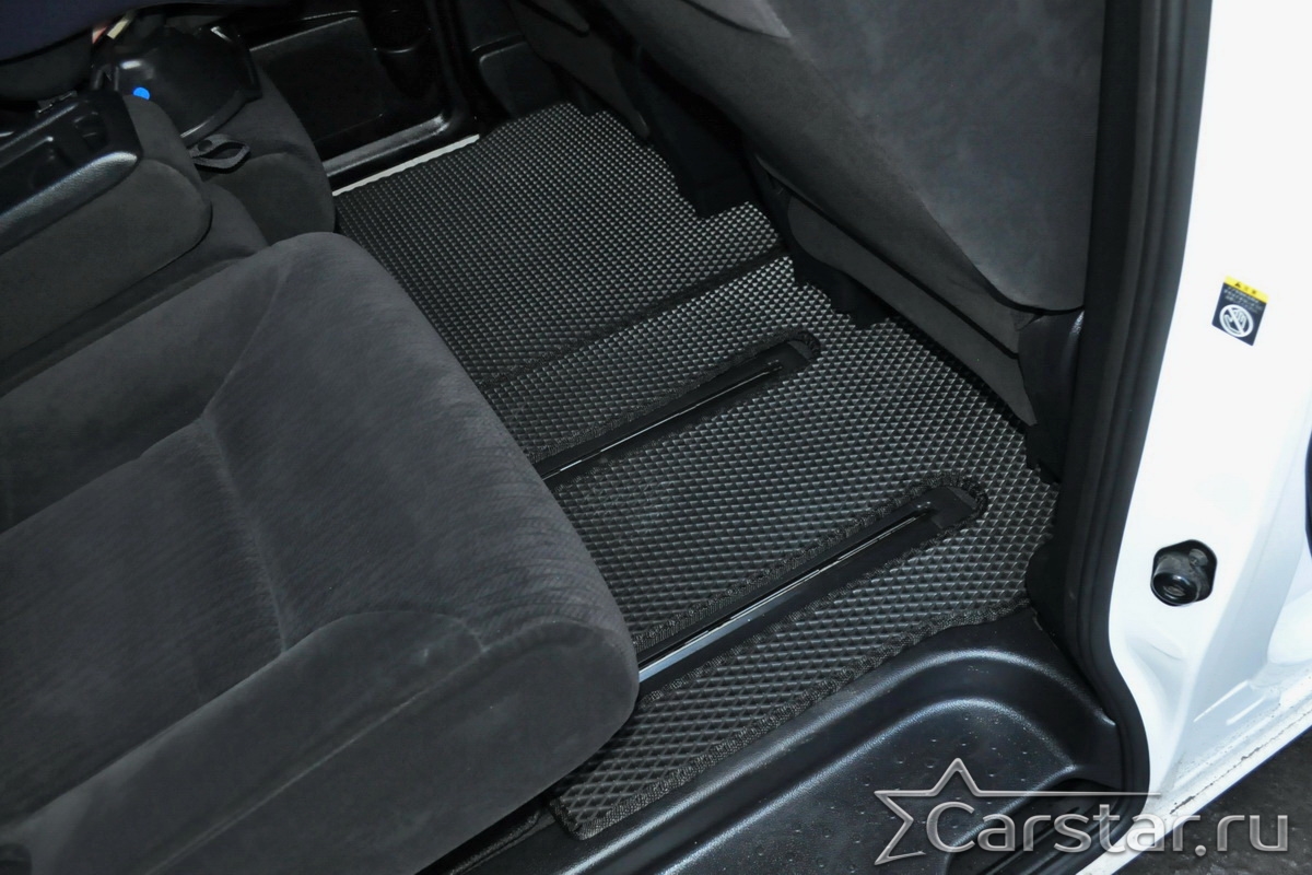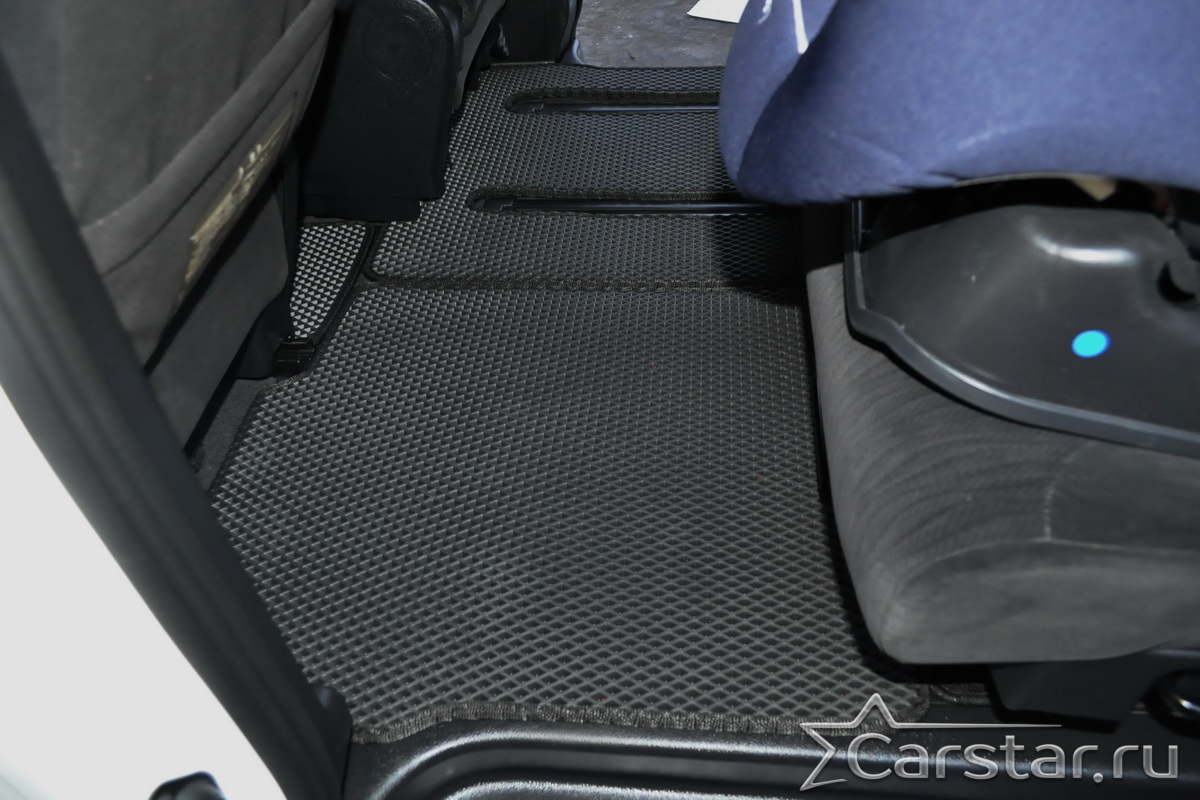 Текстильные коврики надёжно крепятся с помощью оригинальных систем фиксации. Обратная сторона имеет противоскользящее покрытие, что обеспечивает защиту от смещений и безопасность. Максимальное удобство достигается точными лекалами.