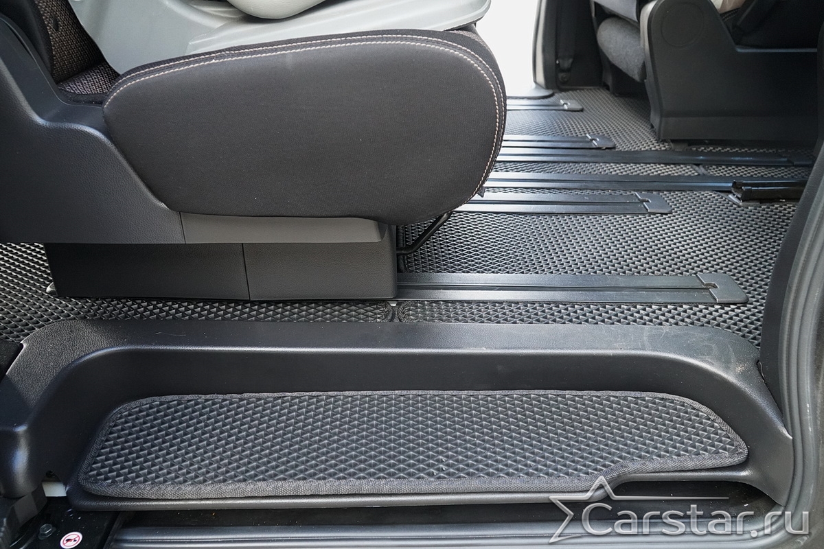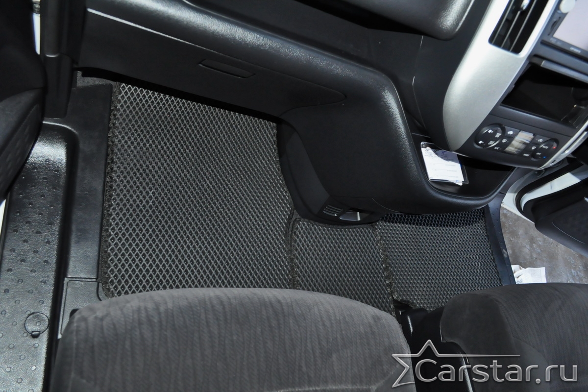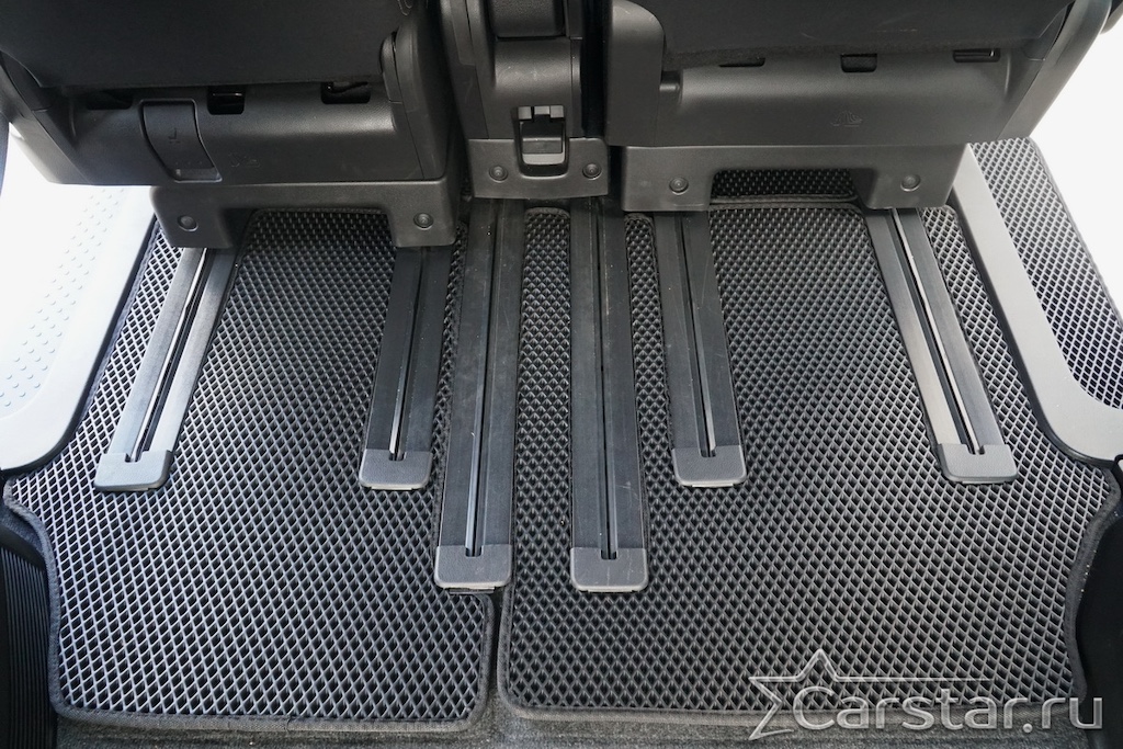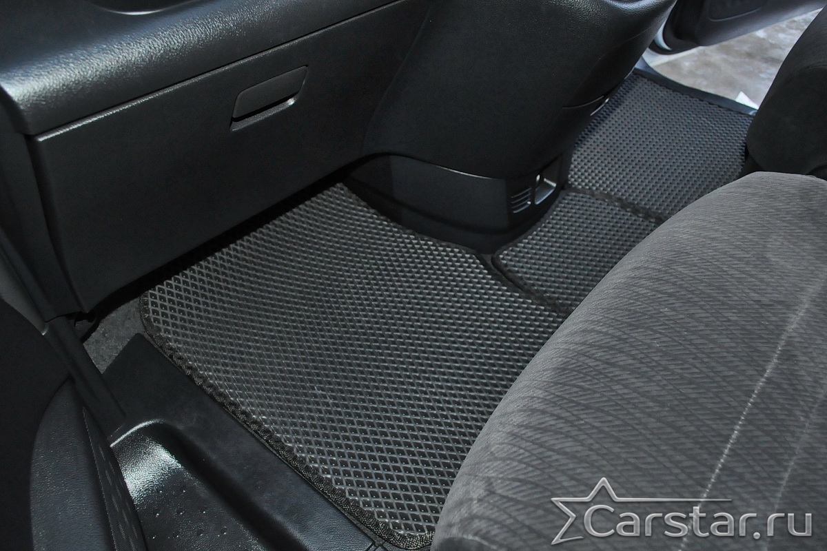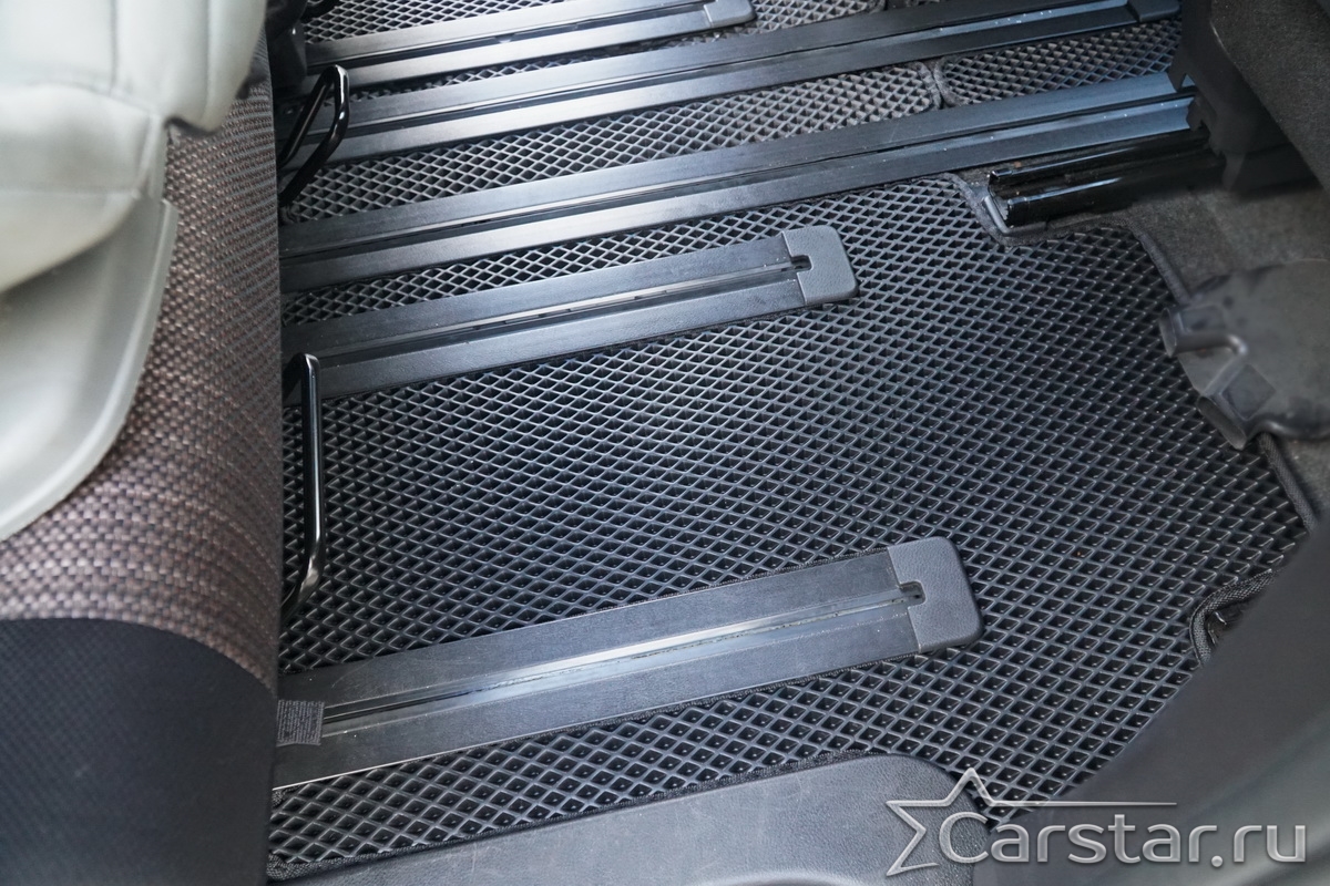 Текстильные коврики надёжно крепятся с помощью оригинальных систем фиксации. Обратная сторона имеет противоскользящее покрытие, что обеспечивает защиту от смещений и безопасность. Максимальное удобство достигается точными лекалами.